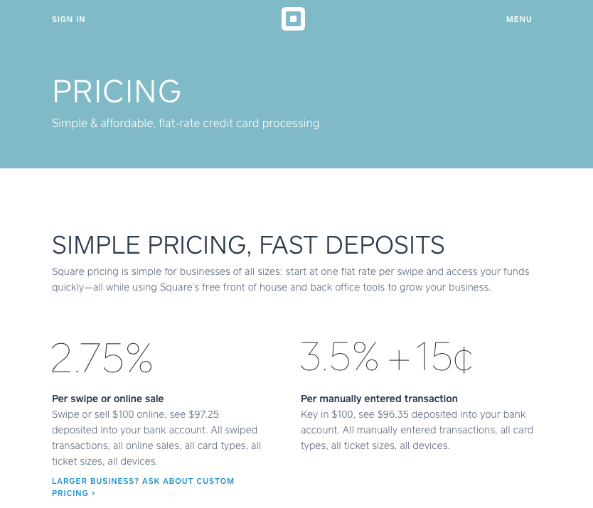 No matter the amazing graphics and visuals on any one page of your website unless there is clear and focused content your visitor won’t know exactly what you want. Seems like a give-in? It is not however, on the contrary often times business owners focus on the way they come off to a potential customer instead of focusing in on the exact action they wish a customer to perform. The screenshot show exactly what focused well written content and design look like, the result is a clear understanding of what the page is for and what Square wants there customers to know.