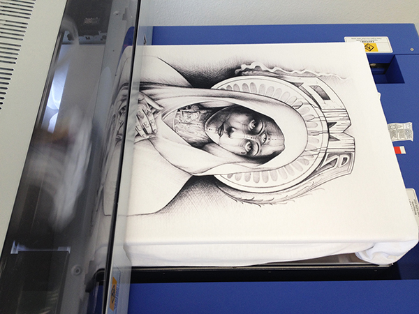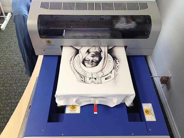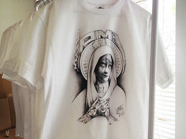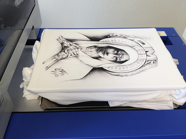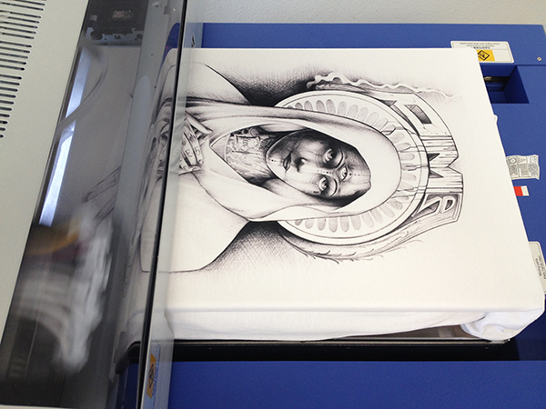 This client is an artist and designer from Santa Ana and wanted to be able to faithfully reproduce one of his hand-drawn pieces without having to simplify it for screen printing. He also had a tight timeline and the project had to fit his budget. With our DTG printer we simply took the piece he sent us, optimized it and made sure the size was to spec and let ‘er rip. Check out how it all came together.