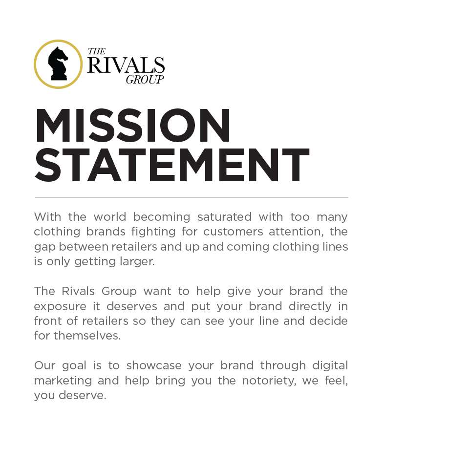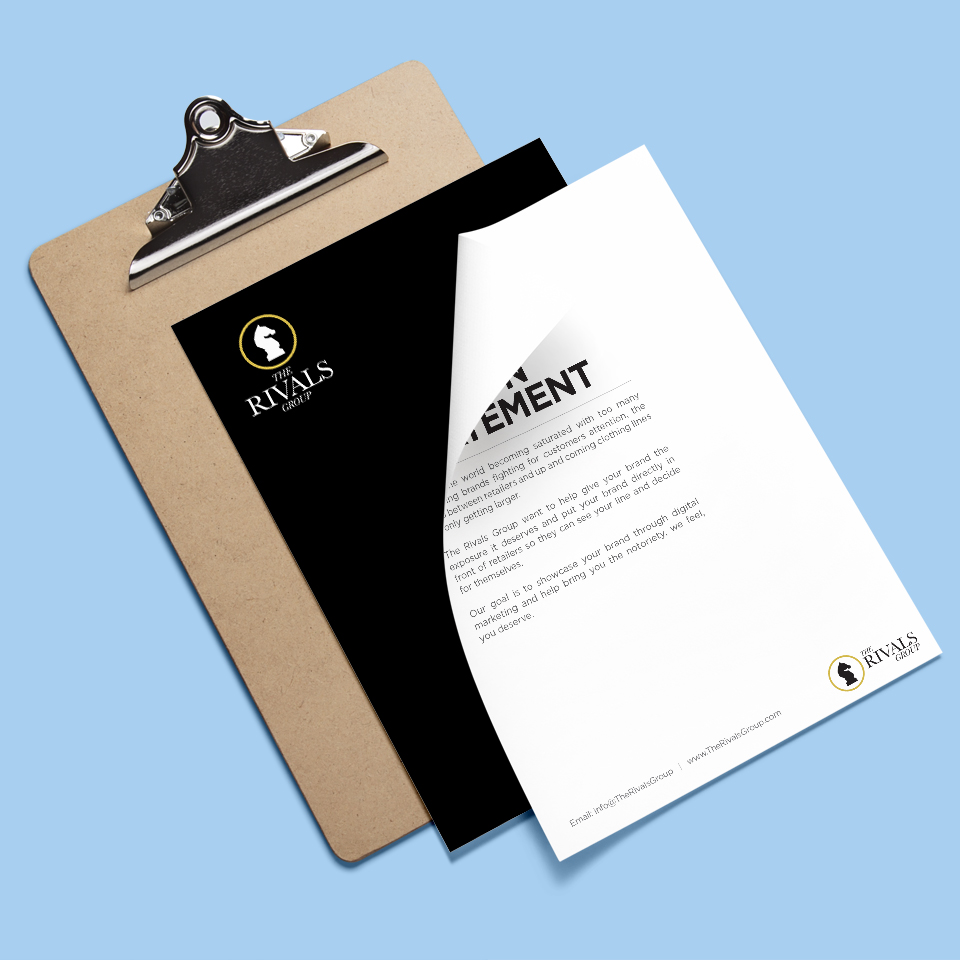 Rivals Group – Branding Branding The Situation We built a solid logo and established a mission statement for an up and coming agency. What We Did • Logo • Branding